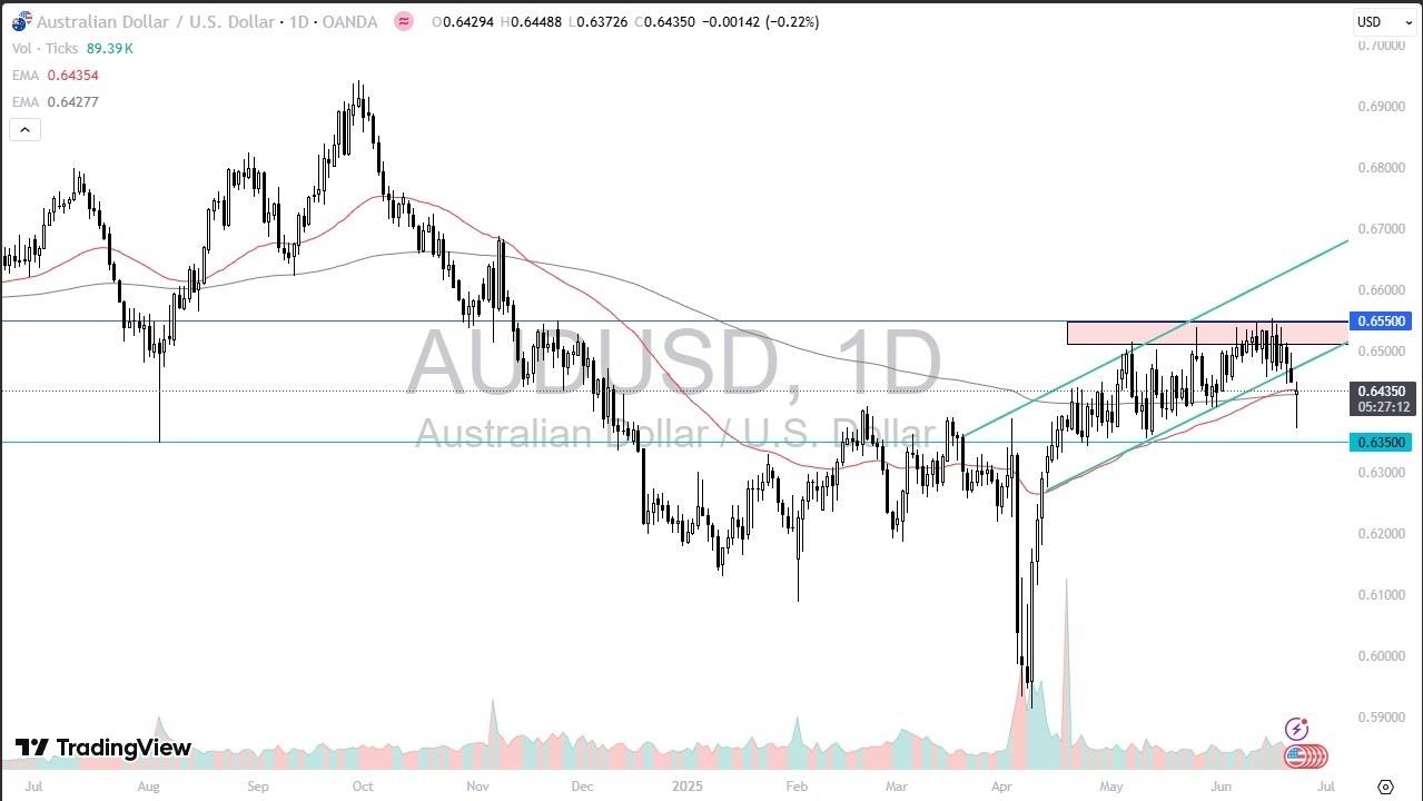 (MENAFN- Daily Forex) The Australian dollar initially plunged at the open on Monday as you would expect, due to all of the \u0026ldquo;risk off\u0026rdquo; headlines out there with the Americans bombing the Iranian nuclear facilities, and the expected retaliation by the Iranians Australian dollar is highly sensitive to risk appetite, so this all ended up tracking about how you would expect being said, we have turned around quite drastically since then, and it looks as if the Australian dollar has some life in it AnalysisThe technical analysis for this pair is very mixed at the moment, which makes sense considering that the world is very erratic place currently. The US dollar is considered to be a \u0026ldquo;safety currency\u0026rdquo;, so it\u0026rsquo;s not a huge surprise to see that it has caught a bit of a bid against currency such as the Australian dollar in the New Zealand dollar. Top Forex Brokers 1 Get Started 74% of retail CFD accounts lose money Read Review BrokerGeoLists({ type: \u0027MobileTopBrokers\u0027, id: \u0027mobile-top-5\u0027, size: SidebarBrokerListAmount, getStartedText: \u0060Get Started\u0060, readReviewText: \u0060Read Review\u0060, Logo: \u0027broker_carrousel_i\u0027, Button: \u0027broker_carrousel_n\u0027, });However, as the day has gone on people have started to suggest and perhaps even believe that there will be a major escalation in the Middle East. Whether or not that is actually true remains to be seen of course, but ultimately it looks like a market that has quite a bit of belief in the idea that perhaps things will settle down. EURUSD Chart by TradingView Previously, we had been in a major grinding up trending channel, and we even managed to break down below the 50 Day EMA, which is where we are as I do this analysis. If we can break back above there, we might make a run toward the 0.65 level, a large, round, psychologically significant figure. That of course will attract a certain amount of attention, and it has been a bit like a ceiling at the moment. On the other hand, if we break back below the bottom of the daily range for the trading session on Monday, then we could open up a move down to the 0.6350 level and below. This is all about risk appetite at this point in time.