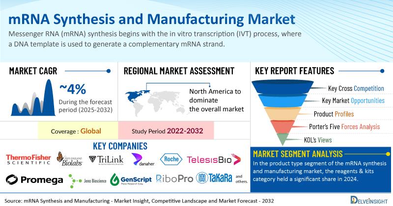 (MENAFN- GlobeNewsWire - Nasdaq) The growing incidence of infectious diseases, cancer, and chronic illnesses has substantially increased the demand for cutting-edge mRNA-based therapies. The surge in mRNA vaccine adoption, especially after the COVID-19 pandemic, has solidified mRNA's role as a key technology in the fight against infectious diseases. Progress in gene therapy is also propelling the market forward, as mRNA is essential for delivering therapeutic proteins to treat genetic conditions and cancers. Its adaptability makes mRNA a cornerstone of personalized medicine, enabling the customization of treatments to suit individual patients. These trends, along with intensified global efforts in product development, are driving innovation, expanding manufacturing capacity, and strengthening the global mRNA synthesis and production market.New York, USA, June 25, 2025 (GLOBE NEWSWIRE) -- Global mRNA Synthesis and Manufacturing Market to Increase at a Steady Growth Rate of ~4% by 2032 | DelveInsight