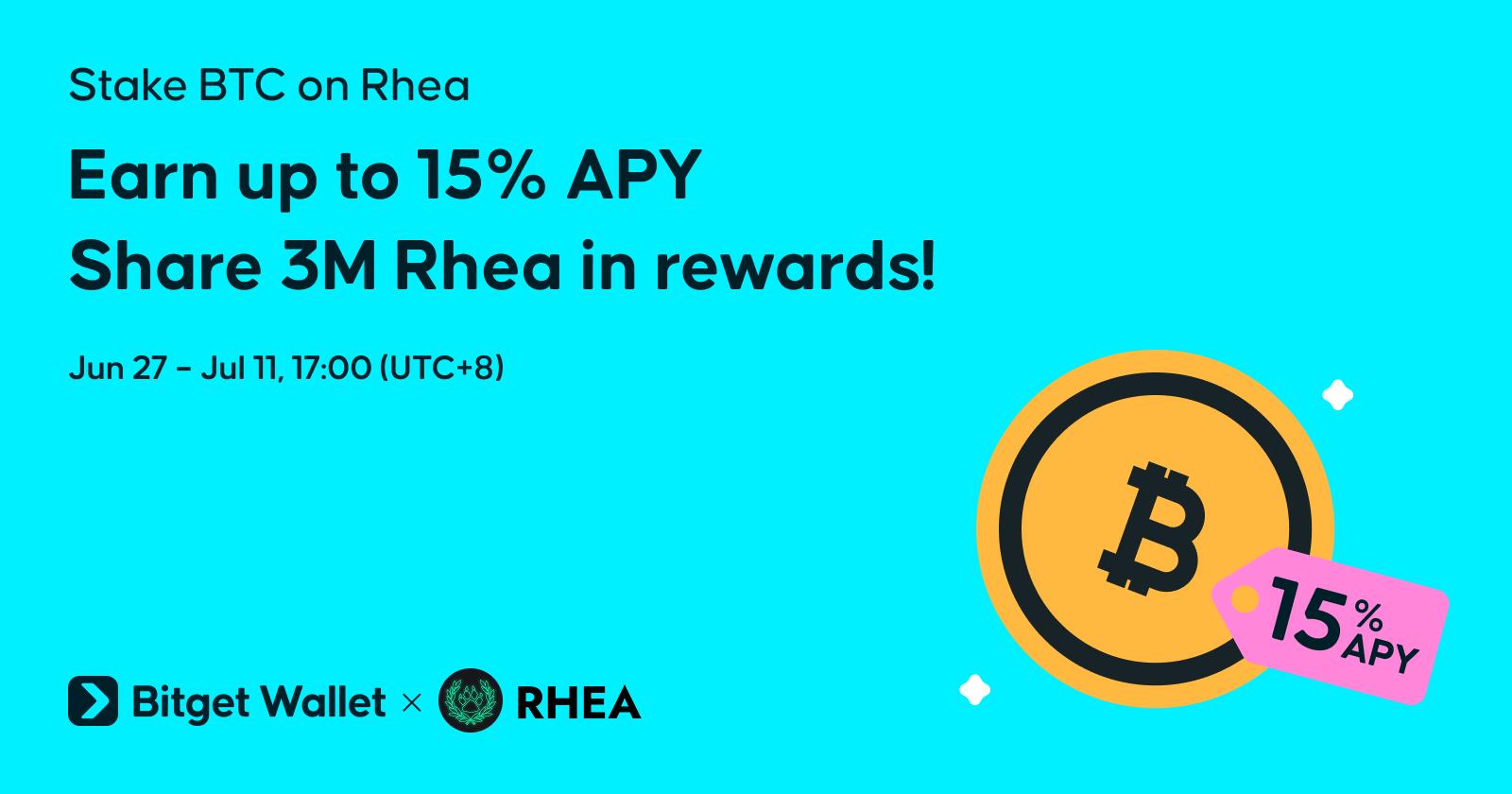 SAN SALVADOR, El Salvador, June 27, 2025 (GLOBE NEWSWIRE) -- Bitget Wallet , the leading non-custodial crypto wallet, has worked with decentralized finance platform Rhea Finance to introduce a BTC staking initiative offering yields of up to 15% APY and 3 million RHEA token incentives. Running from June 27 to July 11, the initiative aims to increase participation in decentralized lending and support the growth of Rhea's onchain ecosystem ahead of its upcoming token generation event.