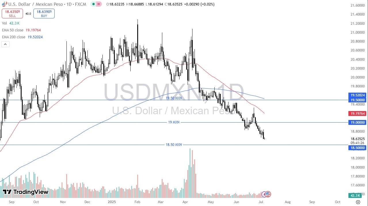 (MENAFN- Daily Forex) The US dollar has been very quiet during the trading session on Friday, as the market continues to look like it is going to favor the Mexican peso over the US dollar makes a certain amount of sense considering that there is so much in the way of interest rate differential that traders can take advantage of by owning the Mexican peso, you should keep in mind that the US economy has a major influence on what happens with the Mexican peso itself all, Mexico sends over 85% of its exports into the United States as it is the world\u0026rsquo;s largest exporter of goods and services to the US. In other words, if the US economy is doing fairly well, it generally benefits the Mexican peso as there will be more demand for goods and services coming out of that country. Top Forex Brokers 1 Get Started 74% of retail CFD accounts lose money Read Review BrokerGeoLists({ type: \u0027MobileTopBrokers\u0027, id: \u0027mobile-top-5\u0027, size: SidebarBrokerListAmount, getStartedText: \u0060Get Started\u0060, readReviewText: \u0060Read Review\u0060, Logo: \u0027broker_carrousel_i\u0027, Button: \u0027broker_carrousel_n\u0027, });Furthermore, you also have to keep in mind that there is a bit of question when it comes to the remittances coming out of the US for Mexican immigrants sending money back home. There has been a bit of a dent put into that as of late, but over the longer term, the larger economy situation is much more favorable for growth, meaning that Mexico should do fairly well. EURUSD Chart by TradingView Technical AnalysisThe technical analysis for this pair is rather negative and has been done for some time. It\u0026rsquo;s worth noting that the last time that we reached the 50 Day EMA, the market ended up selling off quite drastically, showing signs of further selling pressure. The interest rate differential favors the Mexican peso which of course is something that a lot of people will be paying attention to. Ultimately, I believe this is a market that will fall enough to test the 18.50 MXN level, but I also believe that we could very well break down there based on the fact that the momentum has been so strong. Beyond that, you also have to keep in mind that a lot of traders anticipate that the Federal Reserve will in fact cut rates in September, only whitening interest rate differential.