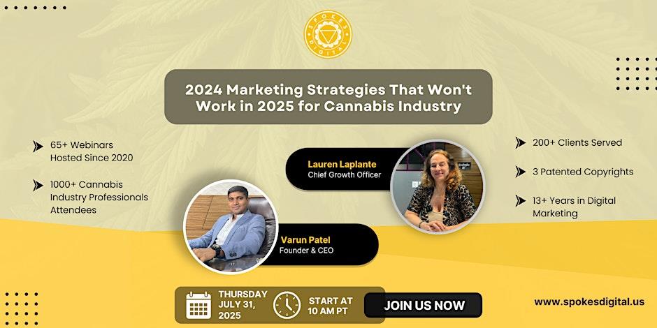 Spokes Digital, a leading AI-driven cannabis digital marketing agency, is excited to announce its upcoming webinar:“2024 Marketing Strategies That Won't Work in 2025 for the Cannabis Industry.” The session will be led by Spokes Digital's CEO, Varun Patel, and Chief Growth Officer, Lauren Laplante, bringing their deep industry expertise to the forefront of this critical conversation.