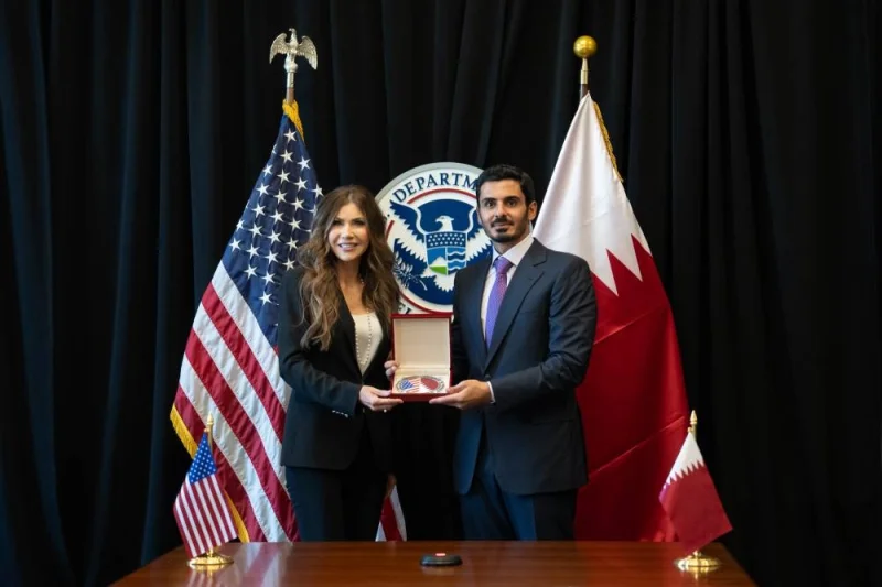 (MENAFN- Gulf Times) HE Minister of Interior and Commander of the Internal Security Force (Lekhwiya) Sheikh Khalifa bin Hamad bin Khalifa al-Thani met with Secretary of the Department of Homeland Security of the United States of America Kristi Noem, during His Excellency's official visit to Washington DC.