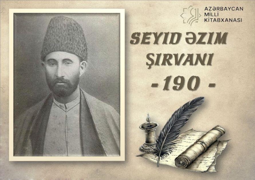 In a remarkable celebration of literary heritage, Azerbaijan National Library has launched a spectacular virtual exhibition titled "Seyid Azim Shirvani – 190", alongside a traditional book exhibition, commemorating the 190th anniversary of the birth of the prominent poet, philosopher, and enlightenment luminary, Azernews reports.
