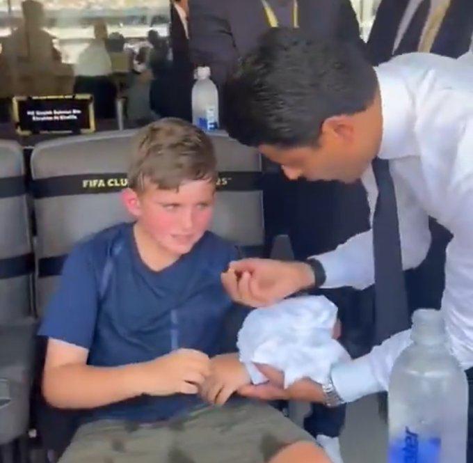 The incident took place on Wednesday night, with Al-Khelaïfi seated near Real Madrid president Florentino Pérez and FIFA president Gianni Infantino. Upon noticing the boy in discomfort, he stepped in to help.