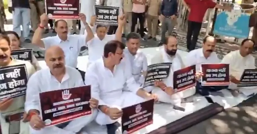 “We are staging a dharna against the decision to make Urdu mandatory for Naib Tehsildar examinations in Jammu and Kashmir, which is not acceptable to us,” BJP MLA and former minister Sham Lal Sharma said.