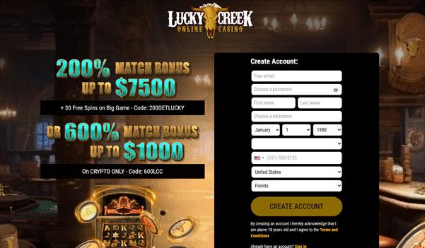 Lucky Creek Casino | 200% Match Bonus up to $7,500 and 30 Free Spins | 4.7/5 |