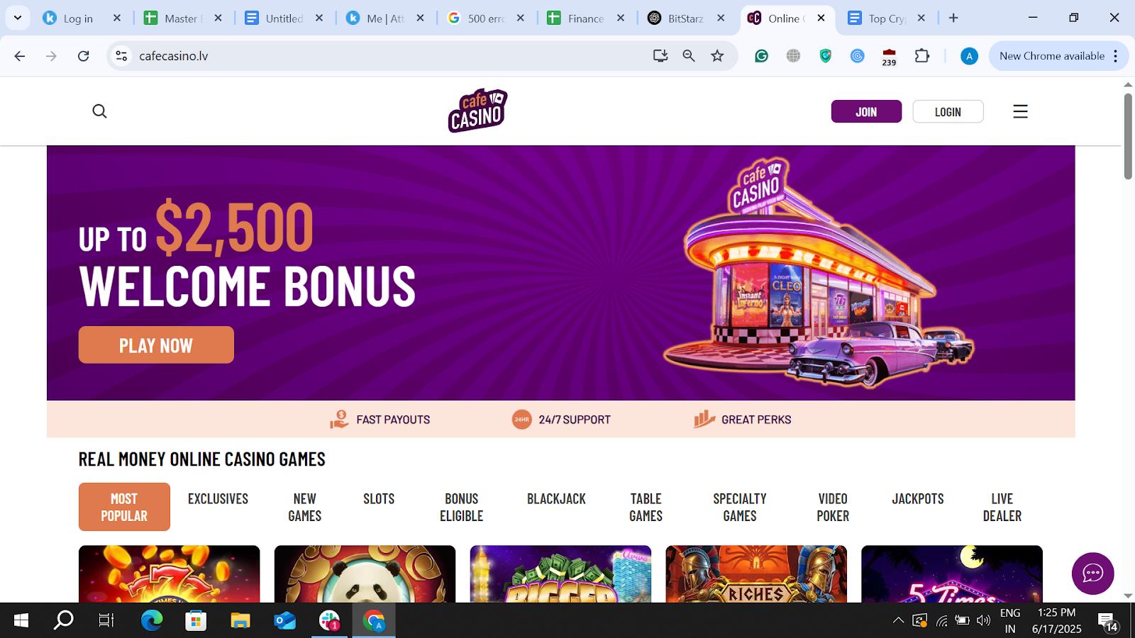 Best For: Players who enjoy generous bonuses and a mobile-optimized platform will find Cafe Casino a great choice.