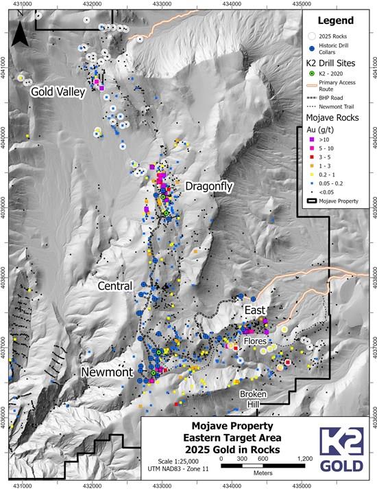 "As we move closer to finalizing the EIS, our confidence in the scale and quality of the Mojave Project continues to grow," stated Anthony Margarit , President and CEO of K2 Gold. "These new high-grade surface results reinforce our belief that Mojave represents one of the most compelling underexplored oxide gold systems in the western U.S."
