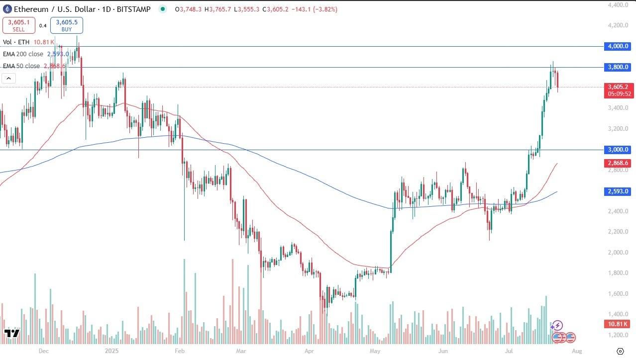 ETH/USD Forecast 24/7: Pulls Back After Strong Rally (Chart)