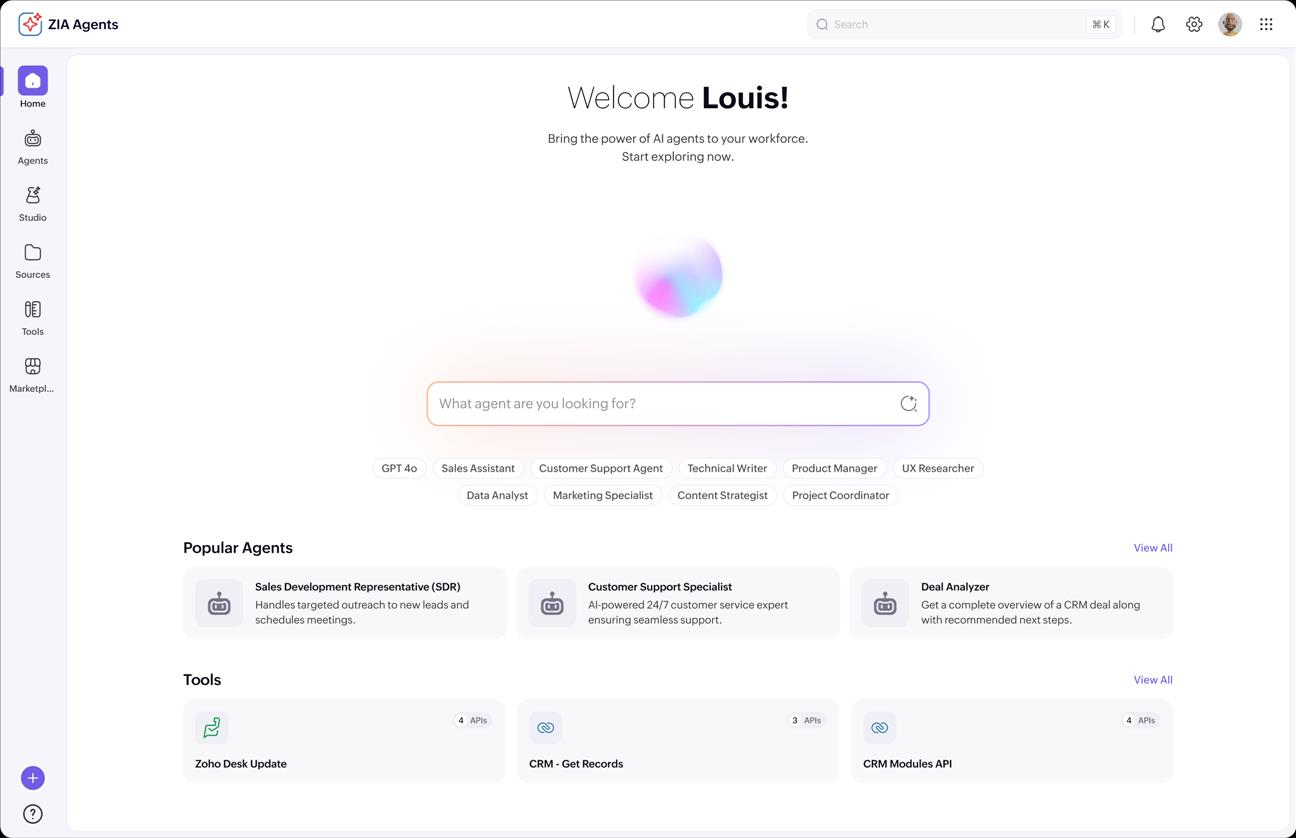 Zoho Marketplace, which supplies over 2500 reliable extensions and integrations for Zoho users, now houses the Agent Marketplace , a dedicated section for AI agents that can be deployed by customers quickly. Ecosystem partners, ISVs, and individual developers will soon be able to create agents and host them on the Zia Agents Marketplace, further simplifying the adoption of agentic technology by organizations.