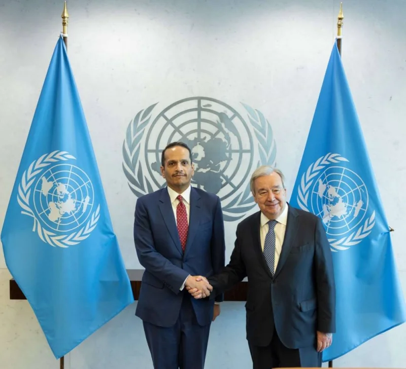 (MENAFN- Gulf Times) HE the Prime Minister and Minister of Foreign Affairs Sheikh Mohammed bin Abdulrahman bin Jassim al-Thani met Tuesday with Secretary-General of the United Nations Antonio Guterres, on the sidelines of the International Conference for the Peaceful Settlement of the Question of Palestine and the Implementation of the Two-State Solution, held in New York.