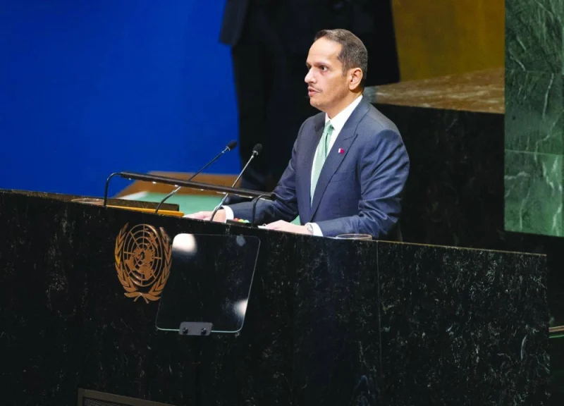 (MENAFN- Gulf Times) HE the Prime Minister and Minister of Foreign Affairs Sheikh Mohammed bin Abdulrahman bin Jassim al-Thani participated on Monday in the plenary session of the High-Level International Conference for the Peaceful Settlement of the Question of Palestine and the Implementation of the Two-State Solution, held in the UN General Assembly Hall in New York.