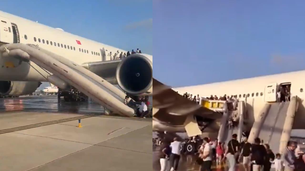 Antalya: Passengers aboard a Turkish Airlines Boeing 777 evacuated via emergency slides at Antalya Airport on Tuesday after smoke was seen coming from the landing gear shortly after arrival from Istanbul. Airport emergency teams recommended an immediate evacuation as a precaution, and all passengers and crew exited safely with no injuries reported.