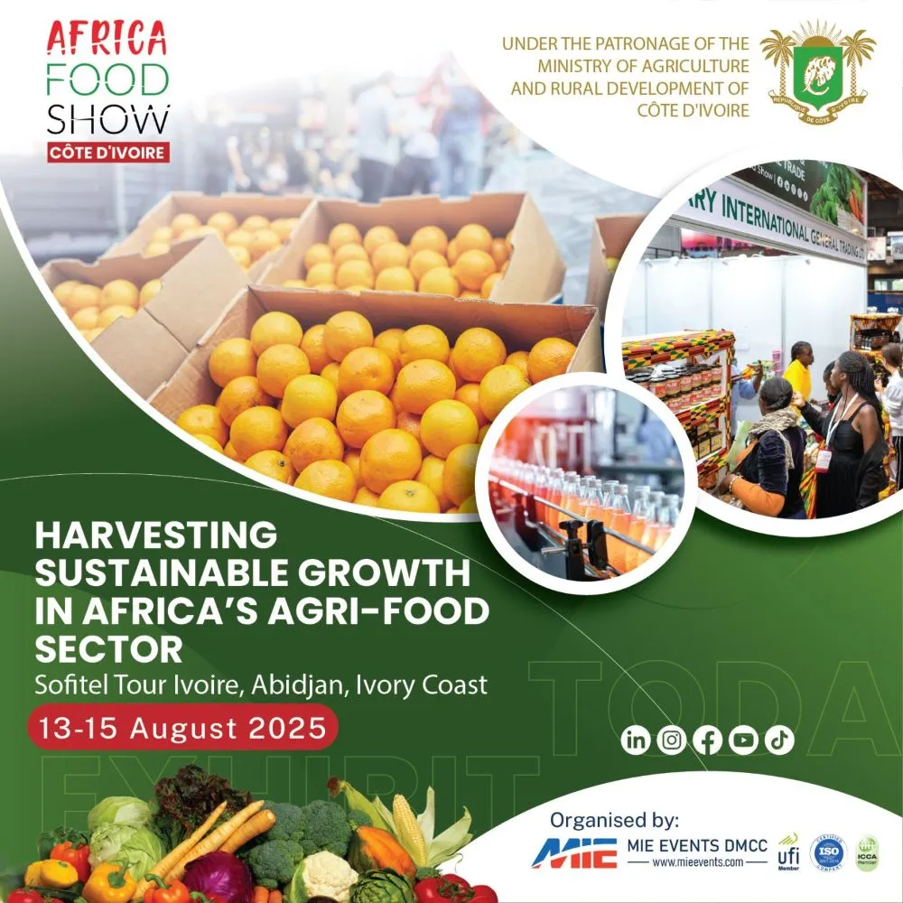 (MENAFN- Mid-East Info) Get ready for a milestone moment in West Africa's agrifood evolution, the Africa Food Show (AFS) Côte d'Ivoire 2025 is set to take place from 13–15 August 2025 at the prestigious Sofitel Abidjan Hotel Ivoire . This premier event is a must-attend gathering for investors, government officials, agri-tech innovators, policymakers, industry leaders, and stakeholders from across the globe.