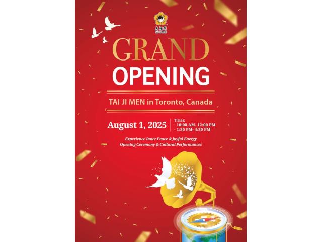 Toronto, ON, Canada, July 30, 2025 -- On Friday, August 1, 2025, Tai Ji Men in Toronto will officially open its doors at 125 King Street East, bringing with it an immersive celebration of ancient energy practices, dynamic martial arts, and uplifting cultural presentations-all designed to promote holistic health and inner transformation.
