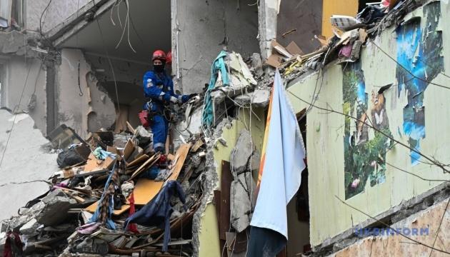 Emergency rescue operations are ongoing in the Sviatoshynskyi district, where 70% of the destroyed building structures have so far been cleared by emergency crews.