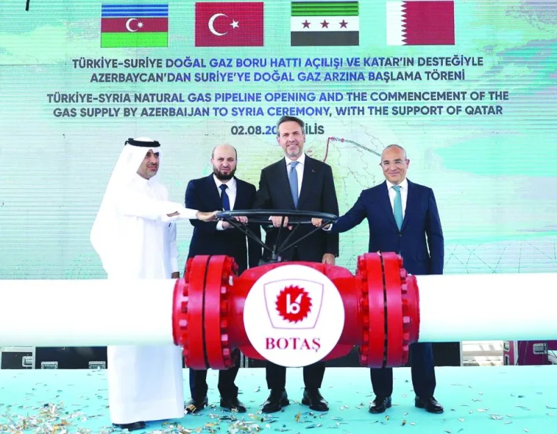 (MENAFN- Gulf Times) Qatar through Qatar Fund For Development (QFFD), the Republic of Azerbaijan, the Syrian Arab Republic and the Republic of Turkiye, announced the opening of the Turkiye-Syria Natural Gas Pipeline and commencement of the natural gas supply by Azerbaijan to Syria, a milestone of regional solidarity and an important step of deepening ties among the brotherly nations.