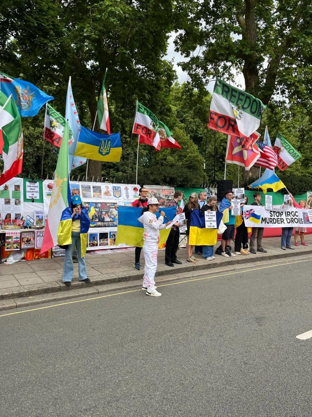 Danilo Nikiforov, representative of the Student Union of Ukraine, said:“We protest against Iran's continued support for the Russian military machine and, above all, against the supply of”Shaheds," which have been terrorizing Ukrainian cities for over three years. We call on the British government to shut down 'charitable organisations' linked to the IRGC that spread Tehran's propaganda and help finance the production of drones that kill civilians."