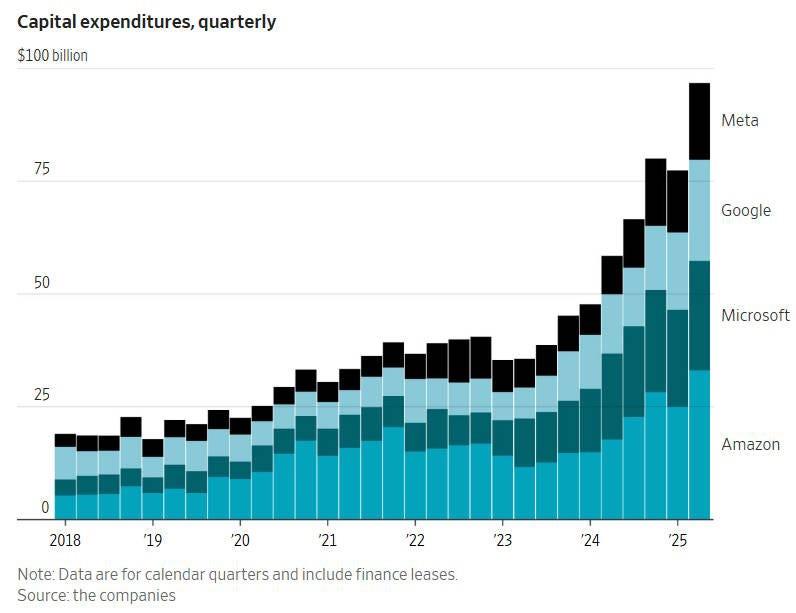 Roughly speaking, Apple is choosing the former , while the big software companies - Google, Meta, Microsoft and Amazon - are choosing the latter. These spending numbers are pretty incredible: