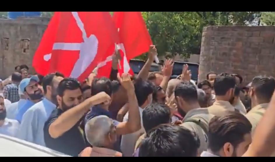 Raising slogans like“August 5, 2019, decisions are not acceptable”,“Black laws are not acceptable” and“Restore Articles 370 and 35A”, the protesters tried to march towards the Lal Chowk city centre but were not allowed to step out of the party office complex by police, who shut the gates of Nawa-i-Subah.