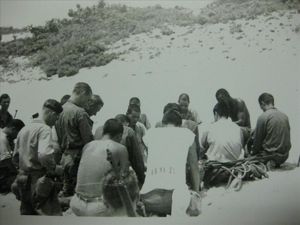 In his report, Clark wrote that Takeda“readily agreed” and, as US and Japanese soldiers knelt together by the shore in prayer, was“visibly moved, arose and thanked us all when the gist of the prayer had been interpreted for him”.