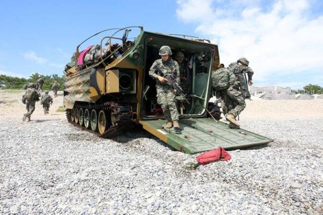 As part of the drills, troops conducted the "decisive action" phase of the exercise in Pohang, involving military assets, such as amphibious assault vehicles and helicopters.