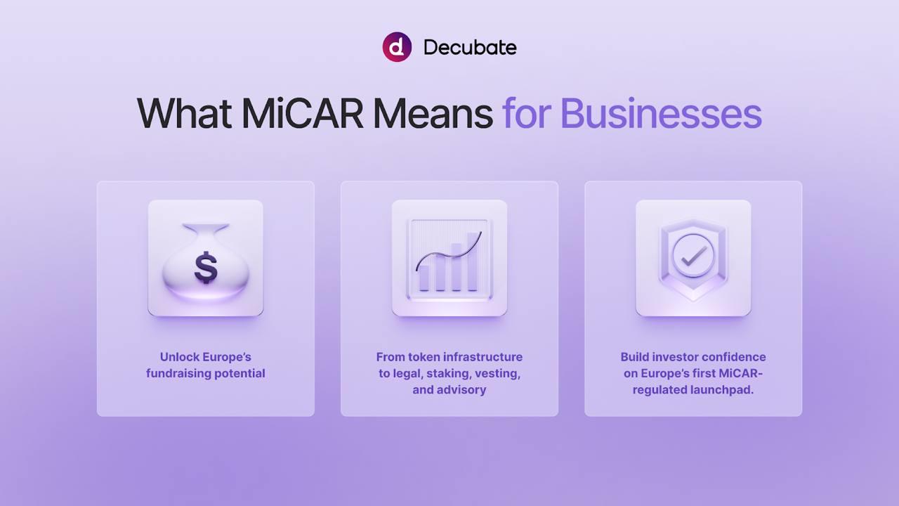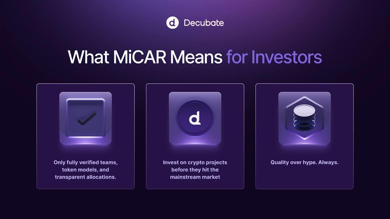 While major exchanges like Coinbase and Bitpanda have secured MiCAR licenses for trading operations, Decubate is the first platform dedicated solely to token launches to achieve this milestone . This creates a new category: regulated crypto fundraising.