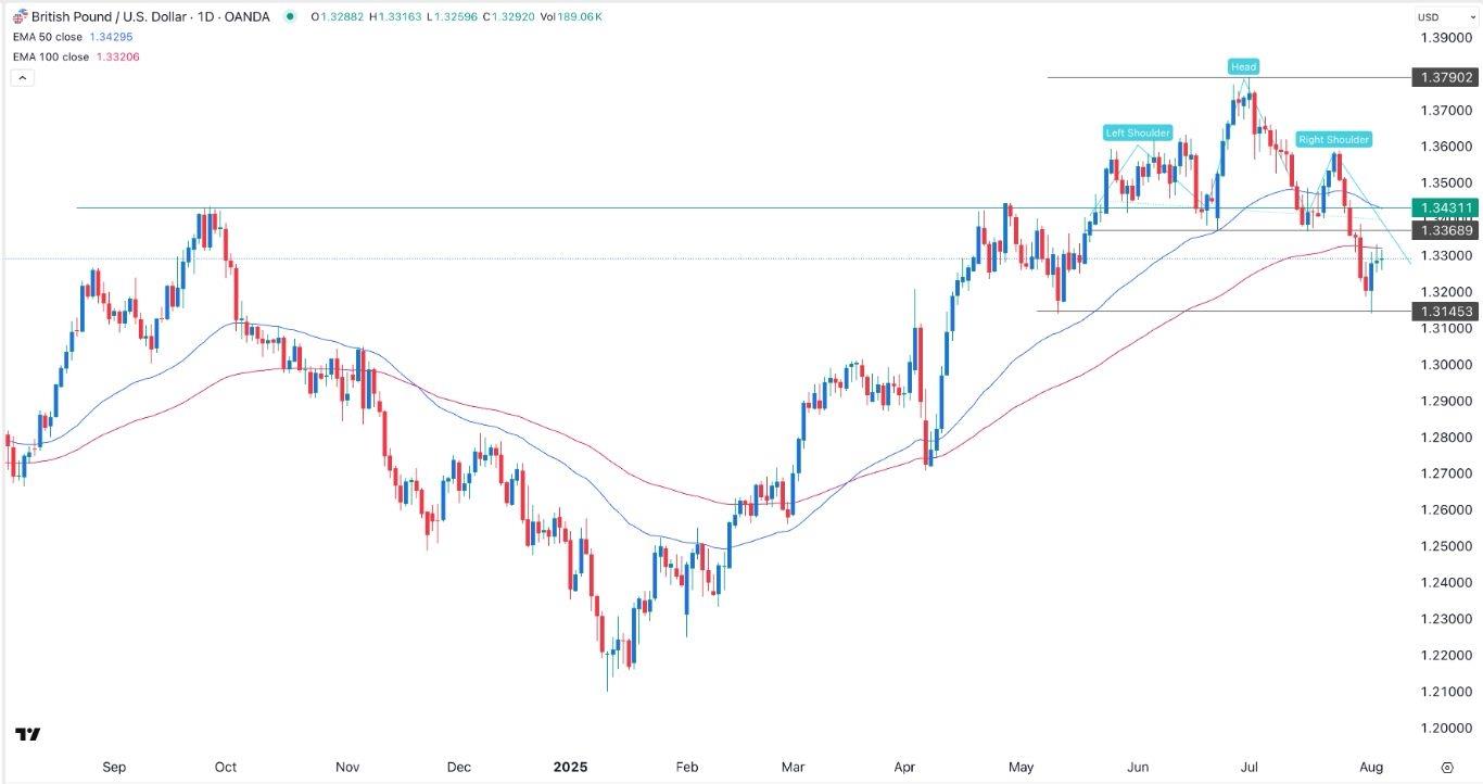 EURUSD Chart by TradingViewGBP/USD Technical AnalysisThe daily chart reveals that the GBP/USD pair has been in a downtrend since July 1 when the bullish momentum ended. It has crashed below the 50-day and 100-day Exponential Moving Averages (EMA).The pair has also moved below the key support level at 1.3368, the neckline of the head-and-shoulders pattern. A H&S is one of the most common bearish reversal patterns.Therefore, the pair will likely rise and retest the neckline at 1.3370, and then resume the downtrend. If this happens, it will retest the key support at 1.3145, its lowest point on August 1. A move below that level will point to more downside, potentially to 1.3100.Ready to trade our free trading signals ? We've made a list of the best UK forex brokers worth using.