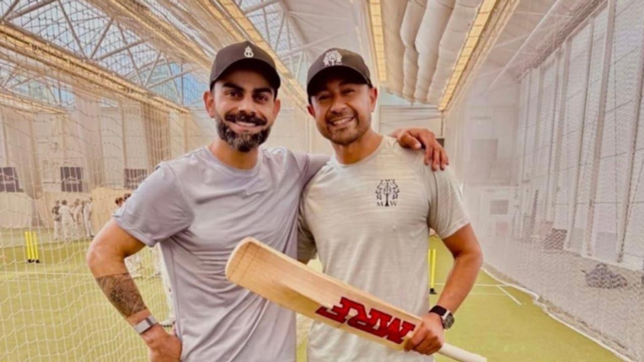 Taking to his Instagram story, Virat Kohli posted a picture of himself and Gujarat Titans' Assistant Coach, Naeem Amin, with whom he began training at the indoor training facility and thanked him for helping him with a hit.