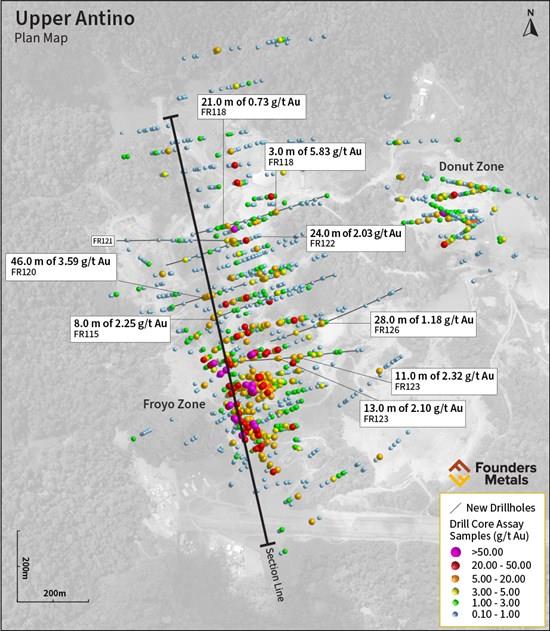 Founders Metals Expands High-Grade Gold Zone At Upper Antino With 46.0 M Of 3.59 G/T Au & Deep Drilling Extends Mineralization To 500 M Vertical Depth