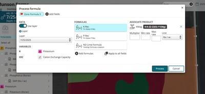 Agronomists can define formulas using soil test data, yield goals, and industry-standard recommendations-then customize outputs with built-in controls for minimum and maximum rates, multipliers, and product selection.