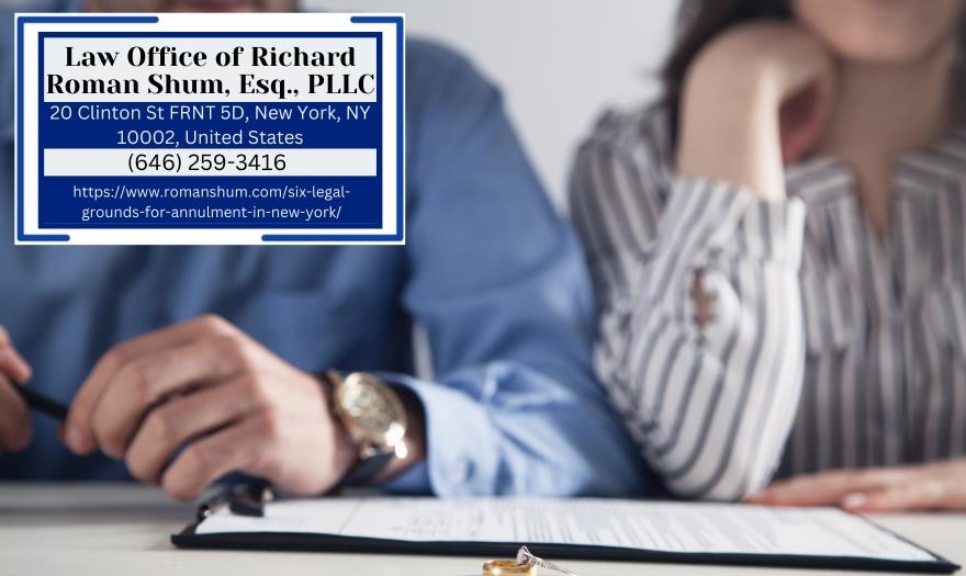 When a marriage in New York faces legal questions about its validity, understanding the specific reasons that qualify for annulment is critical. Manhattan family law attorney Richard Roman Shum ( ) of the Law Office of Richard Roman Shum outlines six legal grounds for annulment recognized by New York courts. Unlike divorce, which ends a valid marriage, annulment establishes that the marriage was never legally valid from the beginning, and each ground requires specific evidence to be proven in court.