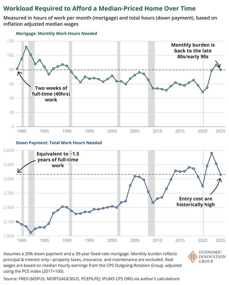 This is a pretty ridiculous chart. Why would you plot home prices on the same y-axis as weekly income? Does anyone think these two things should be even remotely close to the same size? Do we think people should be able to afford a house on a single week of income? That's ridiculous.