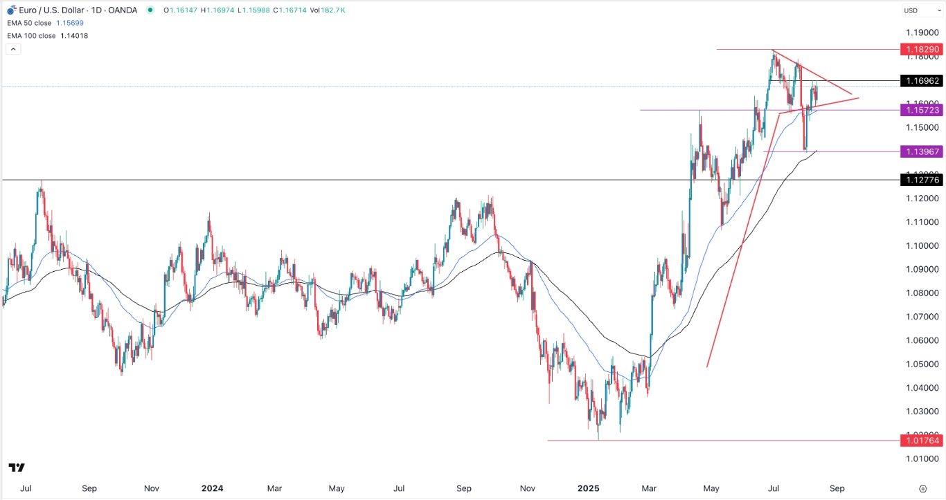 EURUSD Chart by TradingViewEUR/USD Technical AnalysisThe EUR/USD exchange rate has moved sideways in the past few days. It was trading at 1.1670, higher than this month's low of 1.1395.The pair has remained above the 50-day and 100-day Exponential Moving Averages (EMA). It has also formed a bullish pennant pattern, which is made up of a vertical line and a symmetrical triangle.The pair has also formed an inverse head-and-shoulders pattern, a common continuation sign. Therefore, the most likely scenario is where it continues rising and moves to the key resistance level at 1.1830.Ready to trade our free Forex signals ? Here are the top brokers in Europe to choose from.
