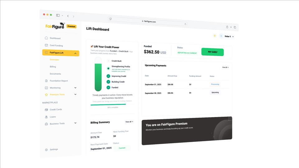 FairFigure , a leader in innovative business credit solutions, today announced the launch of FairFigure Lift , a first-of-its-kind business credit builder account that helps entrepreneurs build credit and access financing simultaneously - without a personal credit check.