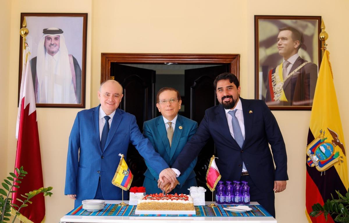 During an event held at the embassy, Ecuadorian Ambassador to Qatar, H E Pascual Del Cioppo, together with other officials, cut a ceremonial cake. In addition, the Sheraton Hotel was illuminated with the colours of the Ecuadorian flag projected onto its front façade to mark the occasion.