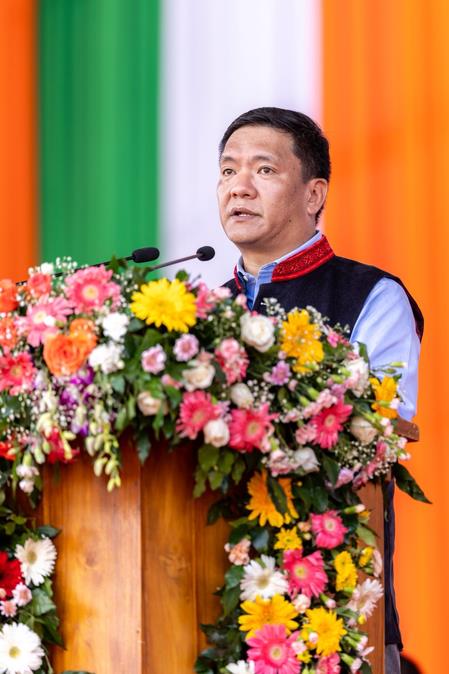 Hoisting the national flag on the occasion of the 79th Independence Day celebration at the Indira Gandhi Park in Itanagar, the Chief Minister said, "Let us support our farmers, artisans, and entrepreneurs. Every Swadeshi choice strengthens our economy and our people."
