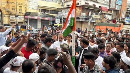 Asaduddin Owaisi unfurled the flag at the famous Madina Circle near historic Charminar