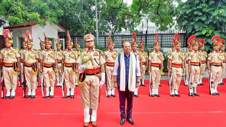 He also honoured veteran freedom fighter R. Madavan at the Raj Niwas. A ceremonial police contingent presented the National Salute.