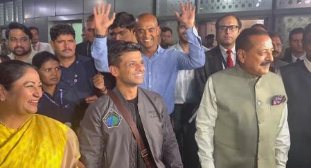 Shukla, who recently completed a two-week mission aboard the International Space Station (ISS) as part of the Axiom-4 mission, touched down in the early hours to chants of "Bharat Mata Ki Jai".