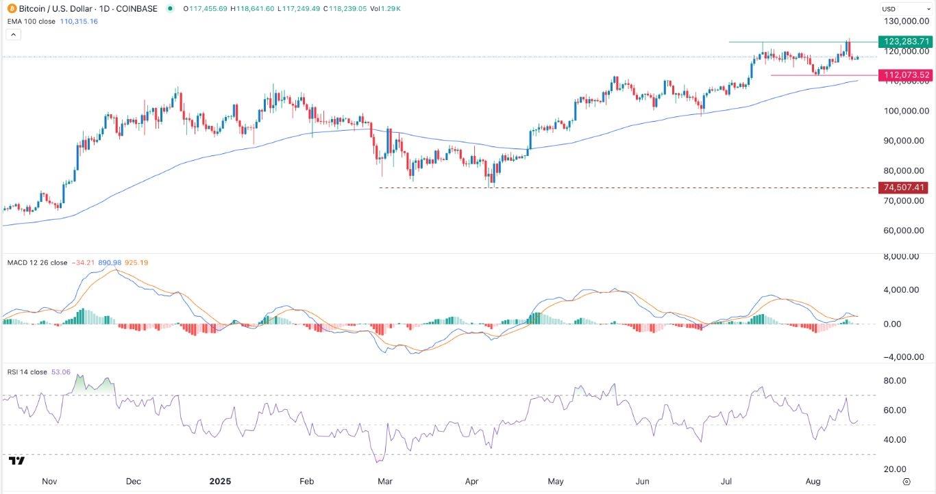 EURUSD Chart by TradingViewBTC/USD Technical AnalysisThe daily chart shows that the BTC/USD pair pulled back from the year-to-date high of 124,420 to the current 118,300. It remains much higher than the 50-day and 100-day Exponential Moving Averages (EMA), which is a positive sign.However, the pair's oscillators have moved sideways. The MACD indicator has remained above the zero line, while the RSI has dropped to 50.The BTC/USD pair has formed a double-top pattern at 123,283 and the neckline at 112,000. This is one of the most common bearish chart patterns.Therefore, the pair will likely pull back as bears target the neckline at 112,00. A move above the resistance at 123,280 will invalidate the bearish outlookReady to trade our free Forex signals ? Here are the best MT4 crypto brokers to choose from.