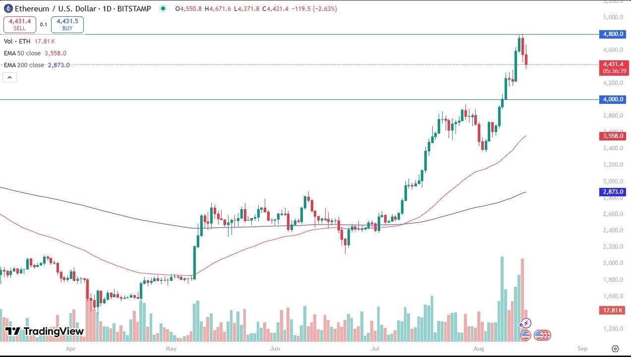 ETH/USD Forecast Today 18/08: Slows Near $4,600 (Chart)