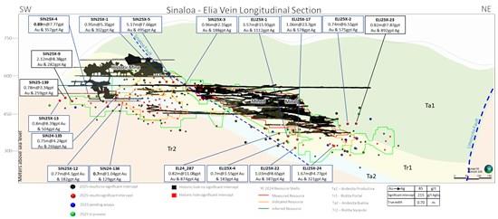 - ELI25X-1: 3.57 metres ("m") at 15.93 g/t Au and 1,112 g/t Ag; SIN25X-5: 5.17 m at 7.66 g/t Au and 495 g/t Ag; ELI25X-17: 1.06 m at 23.70 g/t Au and 578 g/t Ag; and SIN25X-9: 2.12 m at 8.38 g/t Au and 242 g/t Ag.