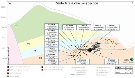 | STE25X-20 | Santa Teresa | 220.10 | 224.25 | 2.53 | 9.65 g/t Au and 121 g/t Ag |