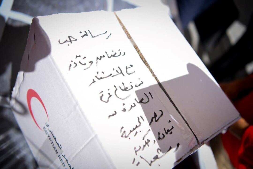 On one aid box sent through the Egyptian Red Crescent, Abdelatty wrote a message of solidarity:“A message of love, solidarity and unity with our brothers in steadfast Gaza, from beloved Egypt – leadership, government and people.”