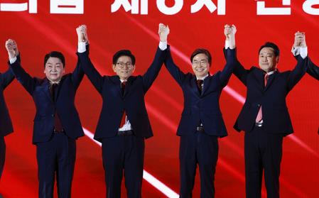 The four-way race for the party leader includes former presidential contender Kim Moon-soo, as well as Representatives Jang Dong-hyeok, Cho Kyoung-tae and Ahn Cheol-soo.
