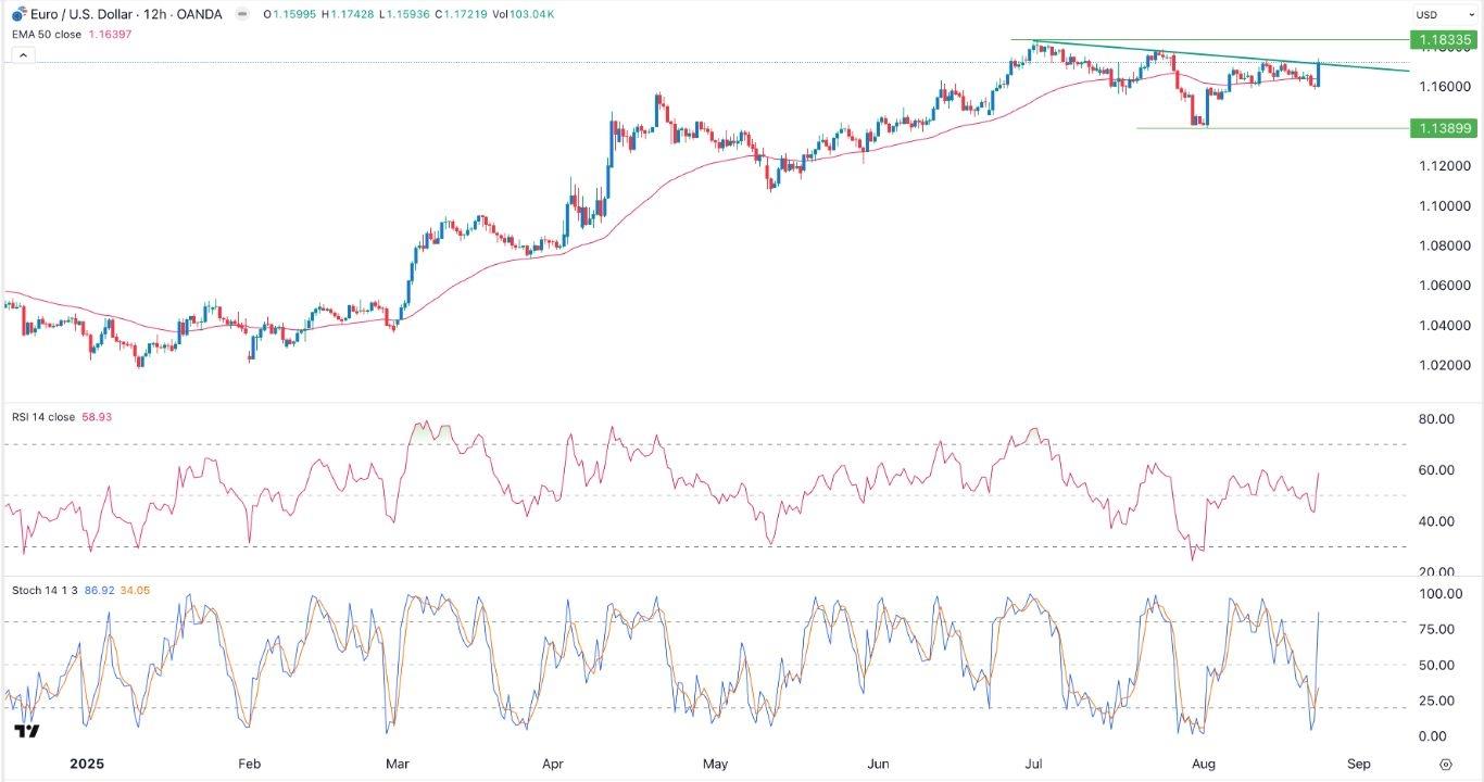 EURUSD Chart by TradingViewEUR/USD Technical AnalysisThe 12-hour timeframe chart shows that the EUR/USD exchange rate rebounded and moved to the highest level in weeks after Powell's latest speech.It has remained slightly above the 25-day and 50-day moving averages, and formed the inverse head-and-shoulders pattern, which is a popular bullish reversal sign.The Relative Strength Index (RSI) and the Stochastic Oscillator indicators have pointed upwards, a sign of renewed momentum. Therefore, it will likely continue rising as bulls target the year-to-date high of 1.1835.Ready to trade our free Forex signals ? Here are the top brokers in Europe to choose from.