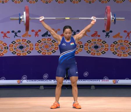 Competing for the first time since her fourth-place finish at the Paris Olympics last year, former world champion Mirabai Chanu lifted 84kg in snatch and 109kg in clean and jerk for a total lift of 193kg for a top spot on the podium.