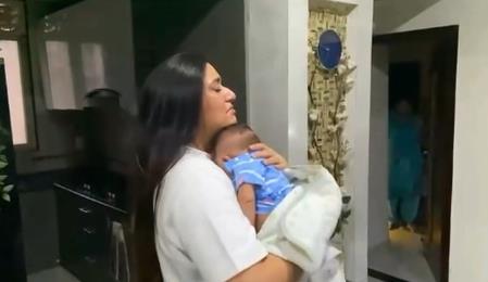 The actress, in the video was seen holding her little baby tight into her arms as he slept peacefully on his mother's chest. Shireen was seen in tears as she was walking him to sleep.