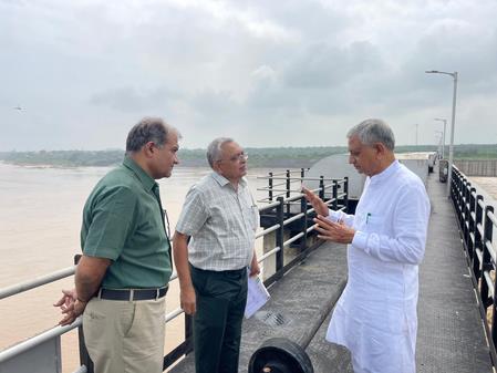 During the visit, the minister instructed the Gandhinagar Municipal Corporation and other concerned authorities to remain in contact with low-lying villages and towns downstream and issue necessary alerts to ensure preparedness.